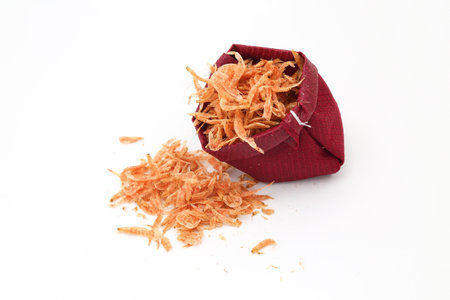 Dried shrimp in a red bag isolated on a white background