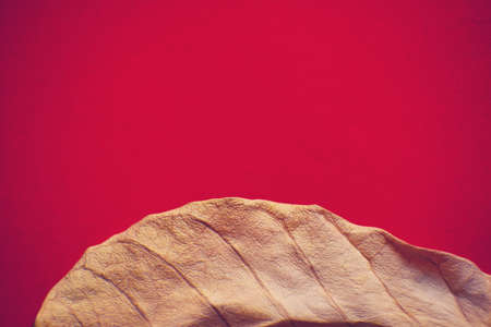 Wilted leaf on a pink background. Aging process concept.