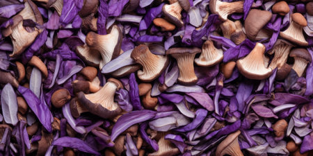 A beautiful assortment of mushrooms arranged artistically, revealing their rich textures and unique color variations, perfect for culinary and nature-themed projects.