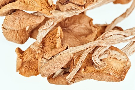 Dried armillaria (fairy-ring ) mushrooms isolated on white
