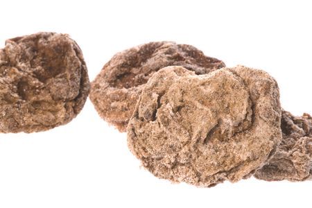 Close view of sun dried raisin in a white background