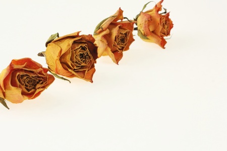 dry roses on white background