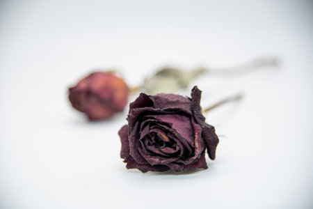 Dried roses on a white background. Close-up, selective focus.