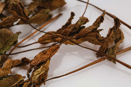 Bunch of mountain tea Malotira isolated on white. Greek traditional herbal tea. Greek mountain tea sideritis. Natural Greek herbs.