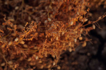 Dry plants and flowers macro, blur background and bokeh, yellow and orange colors mix. Drying plants.