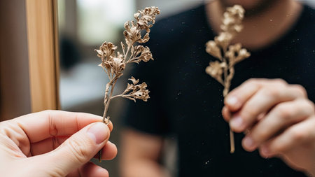 Botanical Macro Image of Dried Flower Heads (Hypericum perforatum) Used as a Natural Mood Enhancer Supplement.