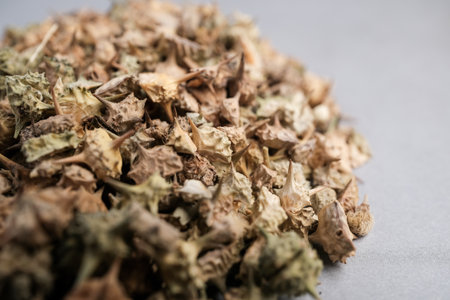 Scientific Still Life of Traditional Herbal Medicine Ingredient: Goathead Spiky Seeds Used as a Diuretic and Performance Enhancer.