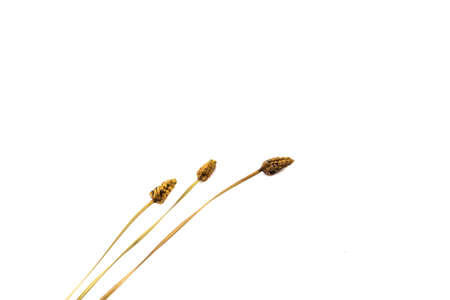 Bouquet of field dried grass on a white background. Rustic vintage hipster style. View from above