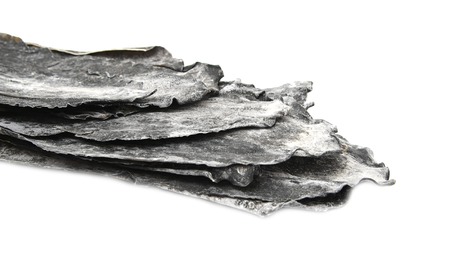 Dried kombu seaweed (Laminariaceae longissima) isolated on white background