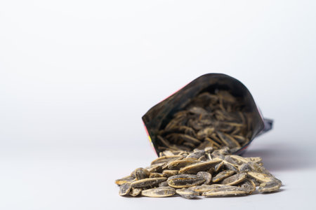 roasted sunflower seeds with salt coming out of their bag