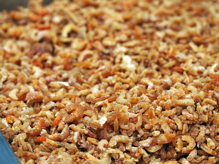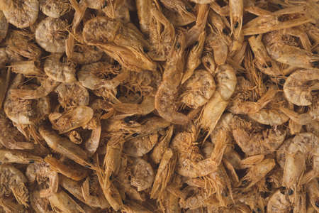 Dried shrimp ready for cooking.Dried tiny shrimp in an Asian market.
