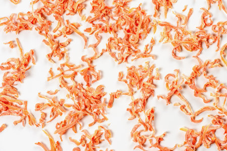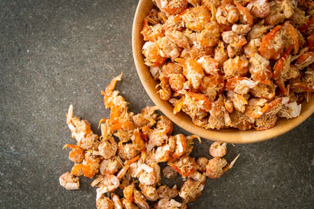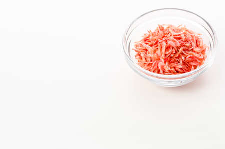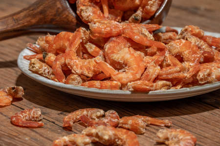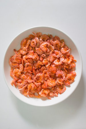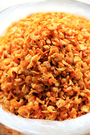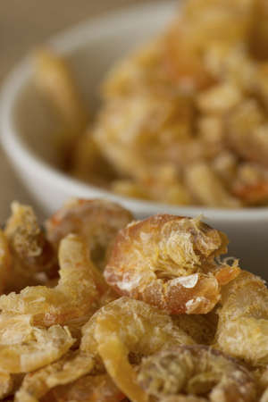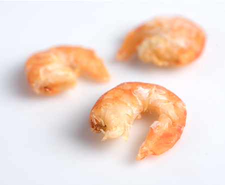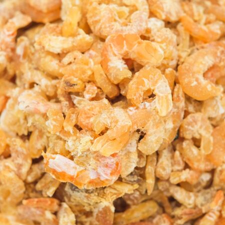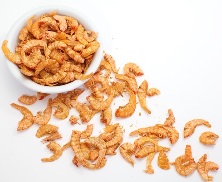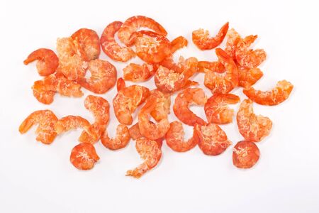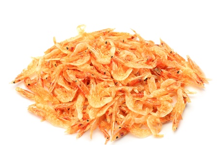 Dried shrimps, am East Asian cuisines, shots on isolated white background.