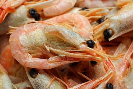 Cooked Atlantic shrimps. Close up. A traditional food of coastal cuisine
