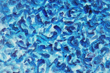 Gammarus pet and fish food background texture. Freshwater shrimp dried fish and turtle food pattern. Fish and turtle food