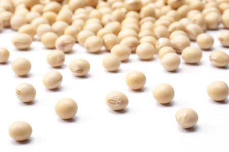 Dry soybeans isolated on white background. Traditional healthy ingredient in Oriental culture