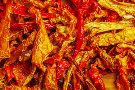 View of dehydrated bell pepper, used as an ingredient in cooking