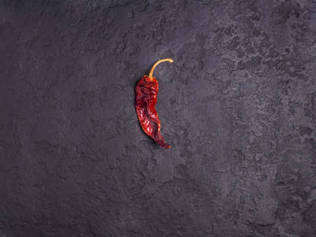 Dried red hot pepper on a black concrete background.