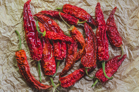 Red hot dried peppers on a crafting paper
