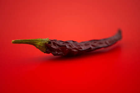Macro image of dried red chilli pepper on red background
