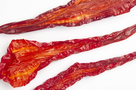 Dried red pepper on a white background. Close-up.