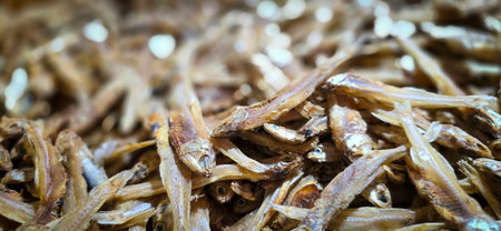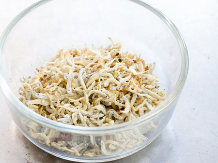 Sun dried tiny anchovies used in Asian cuisine