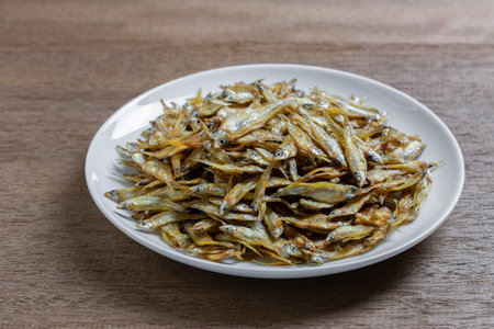 dried anchovies on round plate