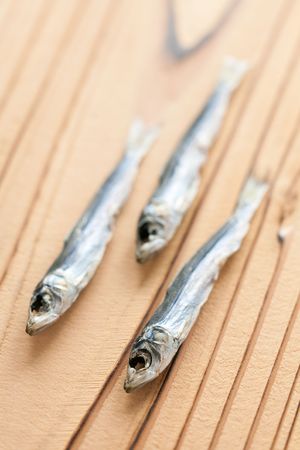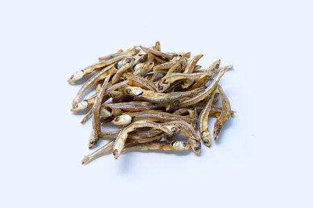 Isolated image of dried anchovies.