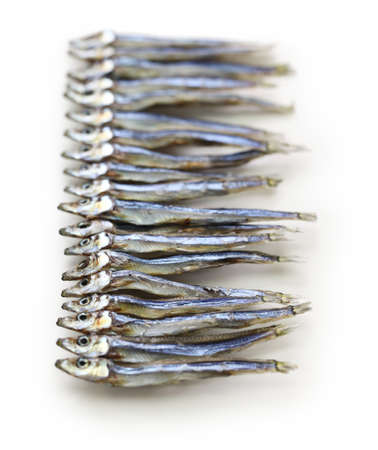 Dried sardine on white background