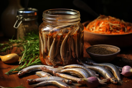 Zesty Tasty pickled anchovies spices. Dish tasty table meal healthy. Generate Ai