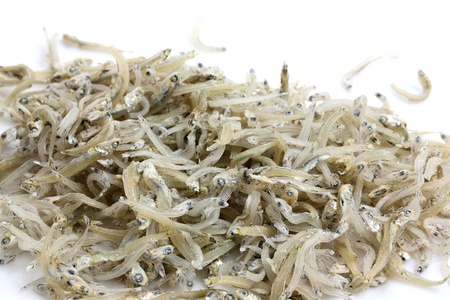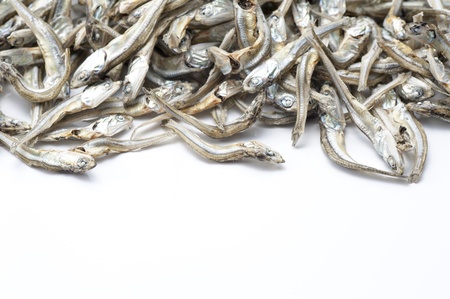 Dried anchovy on white background