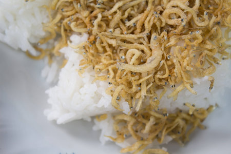 Fried tiny fishes with rice