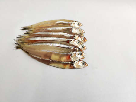 Macro image of Small dried fish isolated on white background.