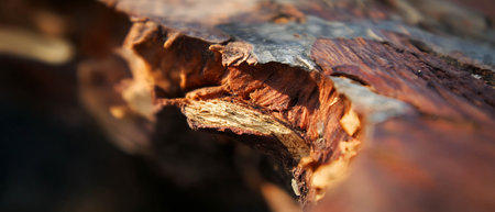 Old cracked wooden trunk detail, selective focus