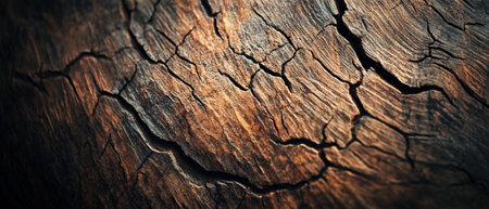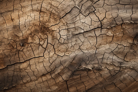 AI Generated. Cracked aged wood texture with deep fissures and warm lighting