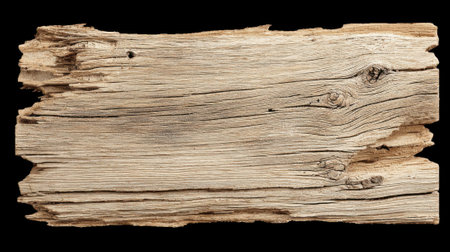 Weathered wooden plank with splintered edges on transparent background