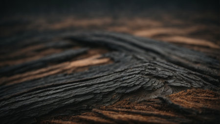 Close-up of charred wood, texture revealed with dark tones, a natural, abstract display