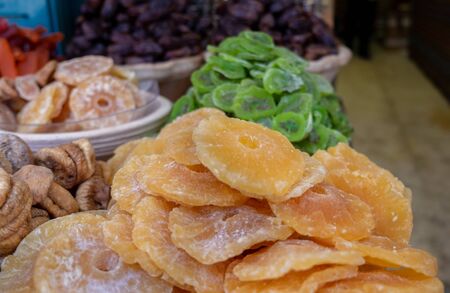 delicious dried fruits and dates candied with sugar to taste, apricots figs and pineapple