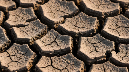 Close-up of parched earth with deep fissures, dry and arid
