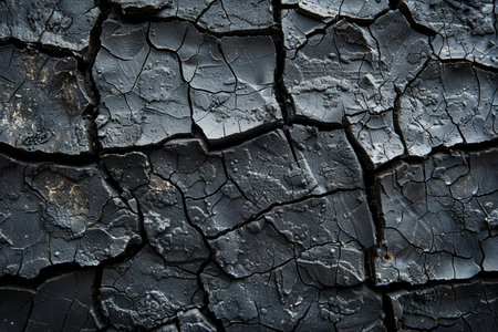Black cracked earthen soil, background texture.