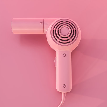 This stylish hair dryer showcases a sleek design with striking light and shadow patterns, perfect for beauty, interior, and product photography.