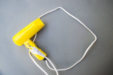 Black hair dryer on yellow paper background