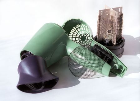 Broken hairdryer on the table