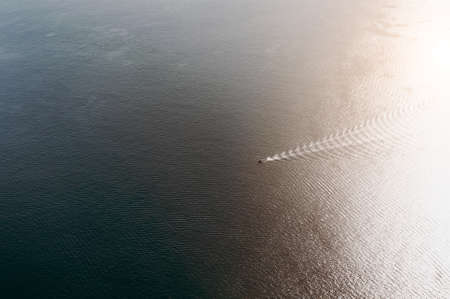 The tropical islands and atolls in Maldives in Indian Ocean from aerial view. Cutting wave boat. Piece of paradise on the Earth. Good choice for vacation. Beautiful top view for wallpaper.