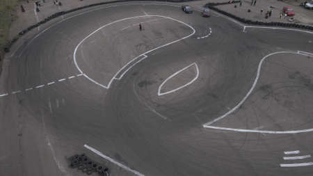 Aerial drone view of the open-air street racing and drift track outdoor