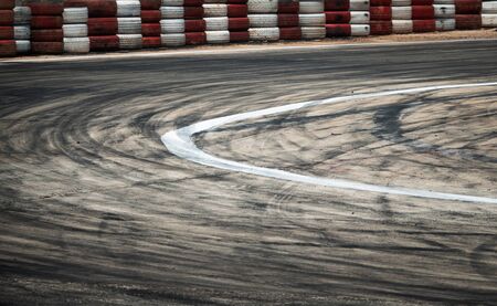 Race car drifting on speed track, Professional driver drifting car on race track with smoke, Abstract texture and background black tire tracks skid on asphalt road, Wheel tire tracks background. High quality photo