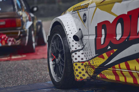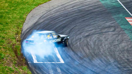 Tokol Hungary Jun 14, 2020: Drift car racing for time and mach. Tokol - an ex military airport - now serving as a motor sport center offers variety of extreme / motorsports.