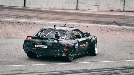 05-08-2021 Riga, Latvia Sport car drifting on the ground.