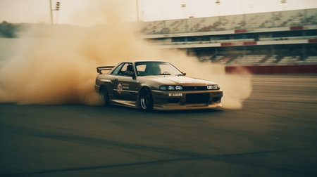 Adrenaline Rush: Capturing the Excitement of Car Drifting with Burning Tires on a Speed Track. Generative AI