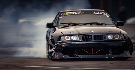 05-08-2021 Riga, Latvia Sport car drifting on the ground.