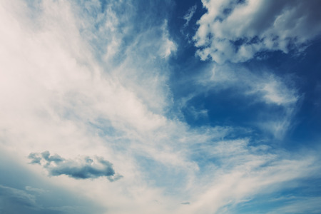 Blue sky with white cumulus clouds. Toned.